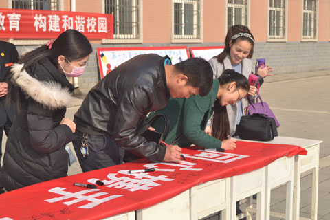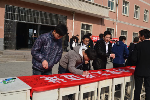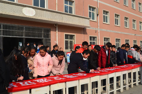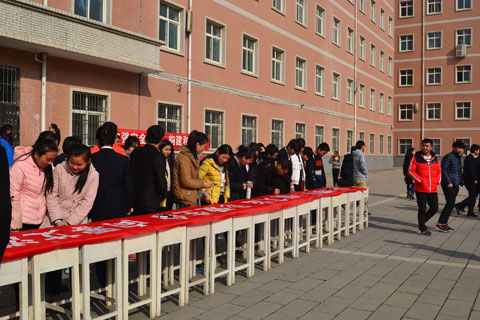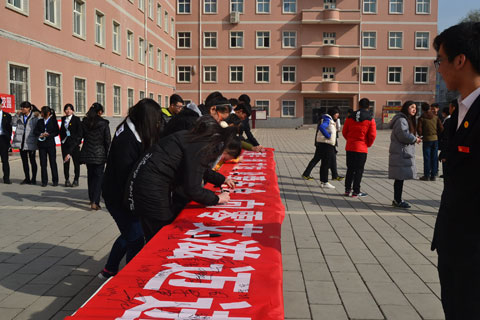 中午12:00活动正式开始,工作人员在活动场向同学们积极宣传艾滋有关知识,不少人还写下自己的爱心寄语、签上自己的名字,有的人还用相机拍照下动人的画面,虽然天气寒冷,但是每一个工作人员都坚守在自己的岗位上,见证那些爱心传递的瞬间。到活动结束时,一条长长的横幅都签满了人名,寄语墙上也签满了各种各样的寄语。