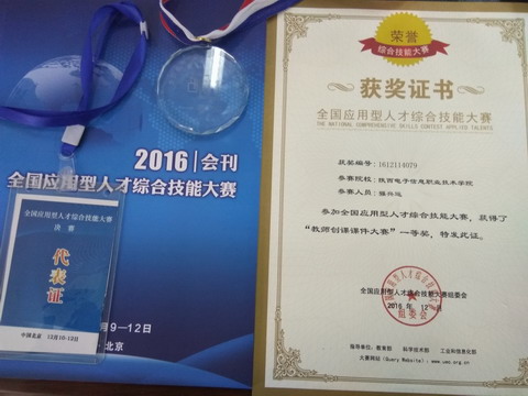由教育部、科技部、工信部支持,由教育部高校毕业生就业协会、全国应用型人才培养工程管理办公室、全国计算机项目管理办公室主办;由北京理工大学、北京印刷学院、北京泰尔时代科技有限公司等单位承办“全国应用型人才综合技能大赛-----教师创课决赛”中我院强兴运老师获得一等奖。