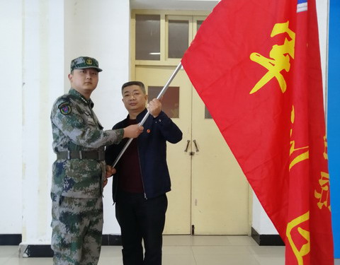 最后,军训团团长穆耀辉为军训团授旗。