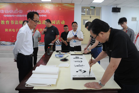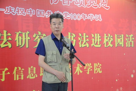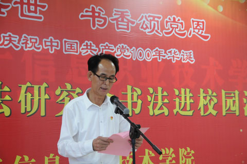 2021年6月1日上午,我院隆重举办“翰墨歌盛世,书香颂党恩”、书韵初心---庆祝中国共产党百年华诞、陕西省教育书法研究会书法进校园活动。院党委书记石光华致辞,省教育书法研究会会长马西平讲话,学院理事会理事长王明星出席活动。省教育书法研究会名誉会长陈云龙、副会长李志慧、副会长秘书长马伟、副会长刘宁、副秘书长李泽林,学院各领导、教职工和学生代表参加活动。活动仪式由常务副院长林工祺主持。