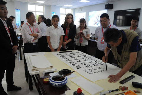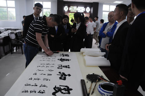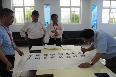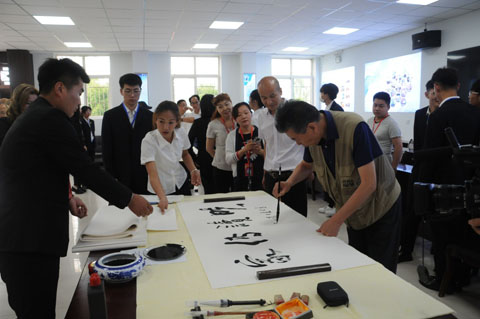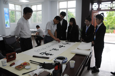 石光华在致辞中指出,书法艺术是最具中国特色的传统文化,博大精深,承载着中华五千年的文脉和民族精神。学院举办这次“翰墨歌盛世,书香颂党恩”书法进校园活动,就是要以书法艺术的表现形式,向党的百年华诞献礼;就是要在广大师生中大力弘扬和传承中华优秀传统文化,营造书香校园建设氛围;就是要进一步增强文化自信,强内涵,推进学院发展上水平、上台阶。院党委书记石光华、理事长王明星向各位书法家赠送了礼品,各位书法家分别与领导班子成员及师生代表合影留念。