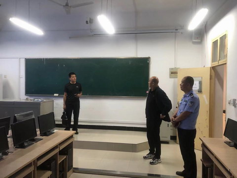 9月8日上午,蓝田县国保大队副大队长刘宏儒一行二人来我院检查校园安全工作。院保卫处处长田志岗介绍了学校基本情况、疫情防控情况、开学后校园治安秩序等管理情况,随后国保大队民警在田志岗陪同下,对学院财务室、实训室、监控室、公寓等重点部位安全管理及运行情况进行了实地查看。在听取介绍实地查看后,对我院安全管理工作给予了充分肯定。