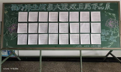 课后,同学们感触颇深,纷纷用观后感的形式,表达了内心的感动。通过这次活动,同学们看到了其他院校师生在疫情面前表现出来的镇定与坚强;感受到了他们“请党放心,战疫有我”的铮铮誓言;稳定了学生们的“军心”;增加了对打赢此疫的信心与决心。