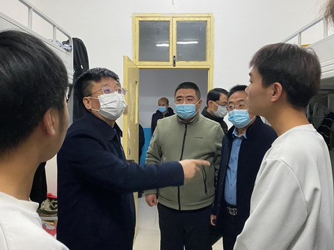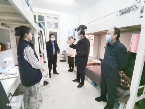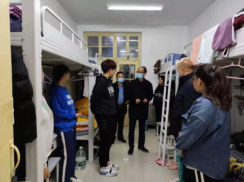 院领导一行来到学生宿舍详细了解同学们学习生活情况,主动征询同学们对学院疫情防控工作的意见和建议,仔细询问同学们的实际困难和需求。