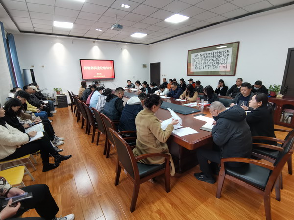 与会人员学习了《中华人民共和国教师法》《教师资格条例》、警示教育案例、陶行知先生教育精神等,并就如何加强师德师风建设工作进行了交流研讨,提出了意见建议。