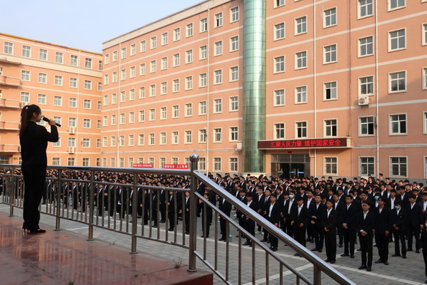 2218班焦晓芹同学作为学生代表作国旗下演讲。她表示,要做心存远大志向的新时代青年,不断锤炼专业精神、提升专业能力,自觉遵守校规校纪,养成良好行为习惯,做到立志勤学、知行合一,努力成长为一名明德向善、好学敬业、积极向上的新青年!