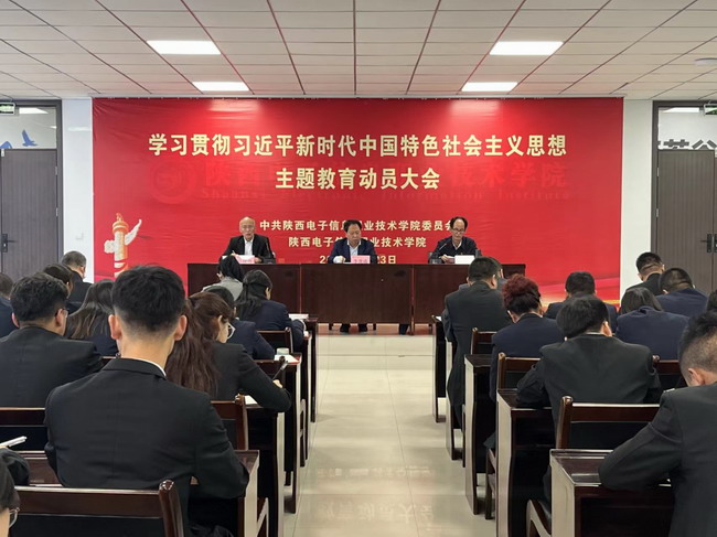 4月23日上午,我院召开学习贯彻习近平新时代中国特色社会主义思想主题教育动员大会,全面部署安排主题教育工作。省委教育工委、省教育厅主题教育第一巡回指导组组长、西安翻译学院原党委书记李虎成到会指导并讲话,院党委书记、主题教育领导小组组长石光华作动员部署讲话,学院领导班子成员、党委委员、副处级以上党员干部、党支部书记及师生党员代表参加会议。会议由院党委副书记、纪委书记马放奇主持。
