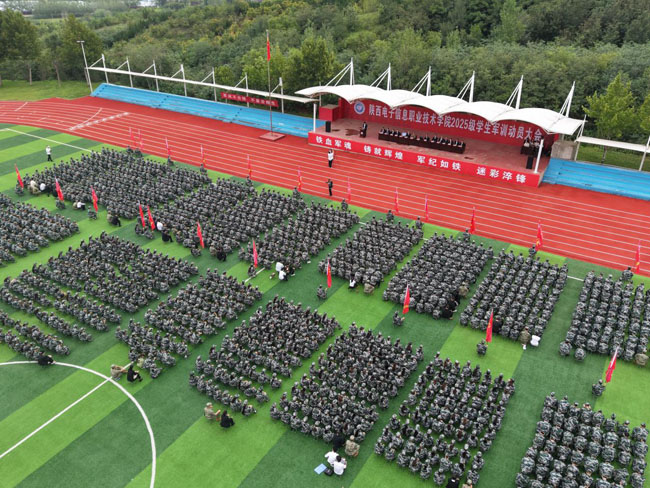 9月4日下午,陕西电子信息职业技术学院校园内彩旗飘扬、气氛庄重,2025 级新生军训动员大会在运动场召开。理事长、院长王明星出席会议并讲话,党委书记石光华为军训团授旗。军训团长杨丽森,党委副书记、副院长年小望,党委副书记、纪委书记马放奇等院领导参会,会议由军训团政委、副院长李泽宇主持。