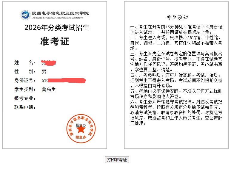 2026年分类考试招生准考证打印流程