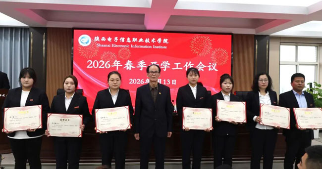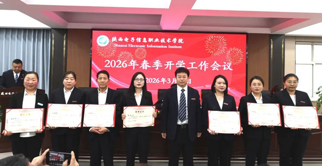 3月13日下午,陕西电子信息职业技术学院在报告厅召开2026年春季开学工作会议。会议旨在传达学习全省教育工作会议精神,表彰先进典型,凝聚发展共识,部署重点工作任务。学院理事长、院长王明星,党委书记石光华出席会议,党委副书记、副院长年小望主持会议。