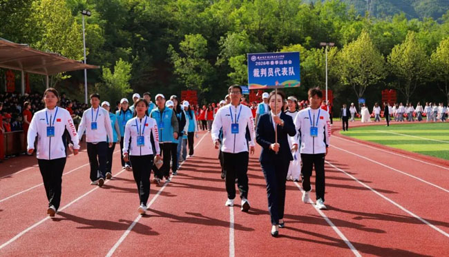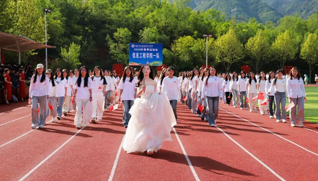 雨后初霁,云开日朗。4月23日上午,陕西电子信息职业技术学院2026年春季运动会暨教职工趣味运动会在“秦岭最美运动场”盛大开幕。院党委书记石光华致辞并宣布开幕,宣传部部长、学工部部长李泽宇主持仪式。绿茵场花团锦簇、彩旗招展,人声鼎沸,全院师生共赴这场青春与活力的体育盛会。