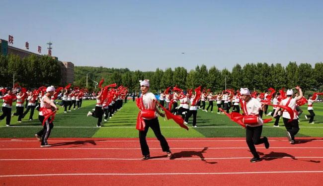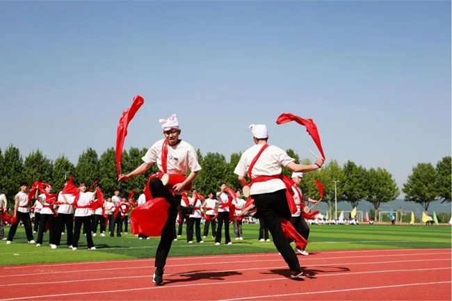文理学院带来的陕北绸子舞《黄土情》,赢得现场雷鸣般的掌声。火红的绸带随风舞动,舒展的身姿尽显柔情与豪迈,将陕北黄土高原的淳朴风情与厚重文化展现得淋漓尽致。这支舞蹈既有黄土高原的淳朴豪迈,也有少年青春的灵动飞扬,他们用热烈的舞姿展现文理学子积极向上、朝气蓬勃的精神风貌,为运动会增添一抹绚丽的色彩。