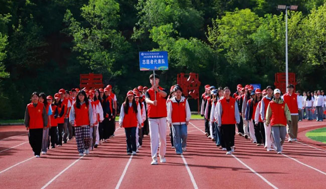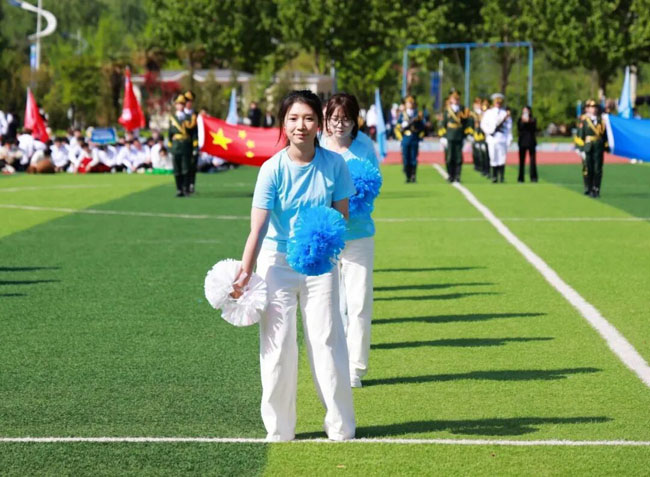 晨光如金,洒满绿茵场;清风携露,拂过少年面庞。激昂的《运动员进行曲》响彻云霄,各方队踏着铿锵节奏,昂首阔步依次入场。国旗护卫队身姿如松、步履铿锵,目光灼灼似炬,守护着鲜艳的五星红旗。挺拔的身影、整齐的队列,是青春热血的书写,更是赤子之心的无声誓言,彰显着新时代学子“强国有我”的飒爽英姿。