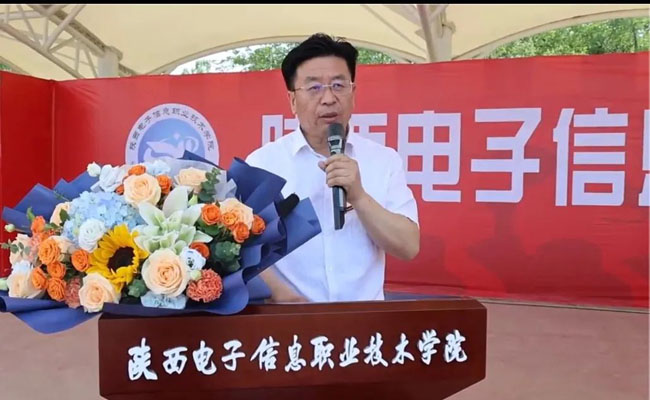 五月的校园绿意葱茏,离别的钟声与夏日的蝉鸣交织成诗。5月20日上午,陕西电子信息职业技术学院2025届毕业典礼在庄严的国歌声中拉开帷幕。理事长、院长王明星出席典礼并讲话,党委书记石光华等院领导与全体毕业生们共同度过这一学习生涯中最难忘的时刻。典礼由院党委委员、副院长石晓英主持,现场气氛热烈而庄重。