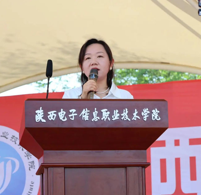 毕业生代表虎霞在发言中深情回顾了校园时光:“从实训室里的反复打磨,到图书馆里的挑灯夜读;从社团活动中的欢声笑语,到技能竞赛中的突破自我……母校的每一寸土地都承载着我们的成长。”她勉励学弟学妹一定要勤奋学习,勇于实践,积极参加各种实践活动,将书本知识转化为实际能力,在实践中不断成长和进步。