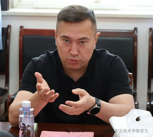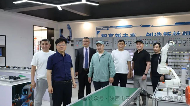 5月24日,哈萨克斯坦欧亚资源集团社会服务中心项目负责人伊斯穆汗别托夫-鲁斯兰-拉西莫维奇、哈萨克斯坦欧亚资源集团教育项目经理马米尔巴耶夫-奥尔扎斯、哈萨克斯坦东方技术人文学院校长叶尔纳尔-图尔辛哈诺维奇一行在陕西电子信息职业技术学院参观交流。理事长、院长王明星等领导陪同参观并参与交流座谈。