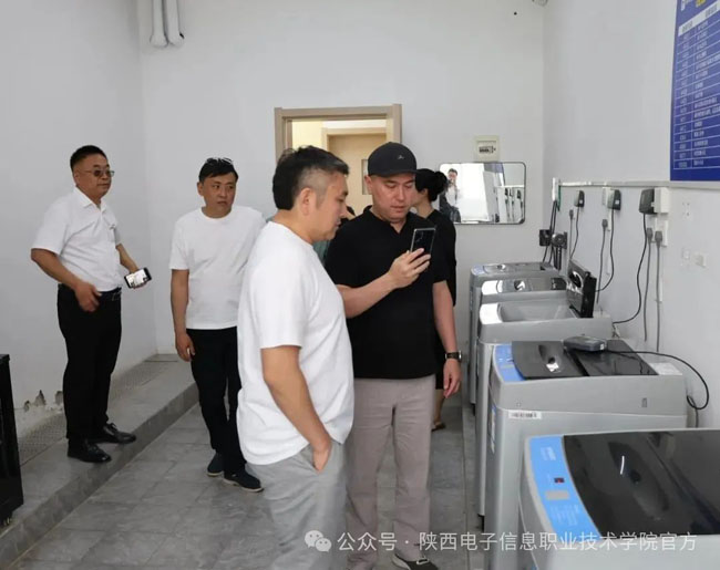 代表团一行先后参观了学生综合餐厅、学生公寓、实训中心等地。参观过程中,校园内绿意盎然,道路两旁杏树上挂满黄澄澄的杏子,呈现出一派生机勃勃的丰收景象,给代表团留下了深刻印象。代表团对学院优美的校园环境、干净卫生的就餐住宿环境,以及先进完备的实训设施给予高度赞赏。