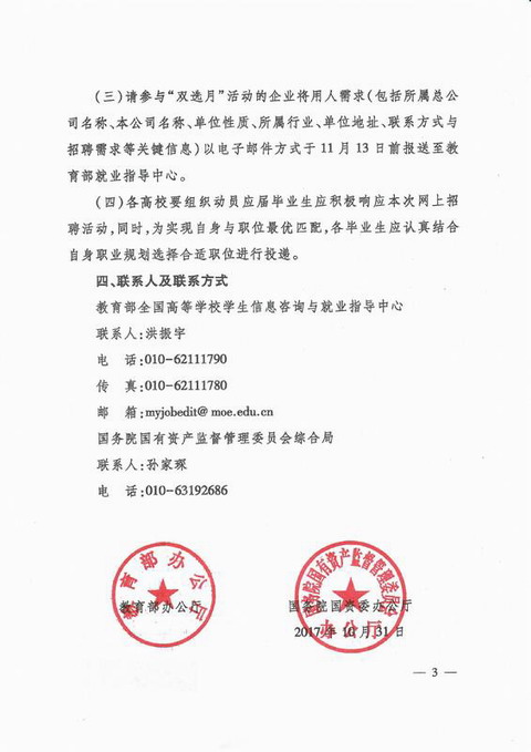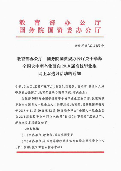 关于举办全国大中型企业面向2018届高校毕业生网上双选月活动的通知