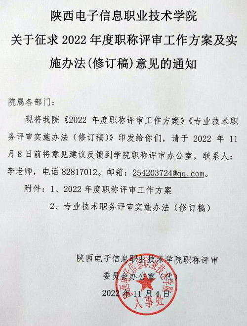关于2022年度职称评审工作方案及实施办法修订稿征求意见的通知