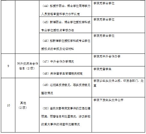 1、学院基本情况的信息。包括学院名称、办学地点、办学性质、办学宗旨、办学层次、办学规模,内部管理体制、机构设置等基本信息。