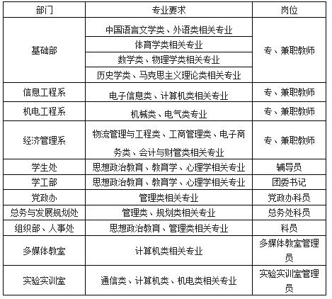 1、本科学历或初级以上职称,计算机相关专业、通信类相关专业、电子类相关专业、机电类相关专业;有计算机、投影仪实战维修经验的可放宽学历要求为专科。有相应操作技能证书,能够胜任通信类、电子类、机电类相关课程实验实训教学工作,有实训室工作经验者优先考虑。