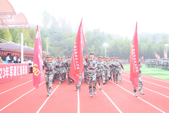 9月18日上午,我院在田径运动场隆重举行2023年学生军训汇报表演暨总结表彰大会。院党委书记、军训团政委石光华出席并作总结讲话,院理事长、院长、军训团团长王明星、承训部队参谋长张帆出席大会,院各领导、各职能部门负责人及全体师生参加大会,国机集团机勘院测绘工程院副院长王双雨,陕西广播电视台《丝路博览》栏目主任孙韩玲,陕西省社科联常委、陕西省心理健康教育研究会会长宋馨等领导嘉宾及10家校外教育实践基地负责人应邀参会。党委委员、副院长李泽宇主持大会。