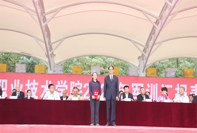 他指出,经过两周时间的军训,我校2000余名学生顺利完成了军训任务,达到了预期效果。军训期间,各位教官不辞辛苦,严格要求,严谨执教,严格训练,循循善诱,认真示范,耐心指导,他们认真负责,一丝不苟的严谨作风深深教育和影响了广大参训学生。参训学生严格要求,严格训练,听从指挥,继承我军光荣传统,发扬不怕苦不怕累的拼搏精神,流血流汗不流泪,掉皮掉肉不掉队,全身心投入训练,圆满完成了各项军训任务。