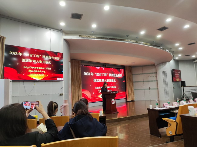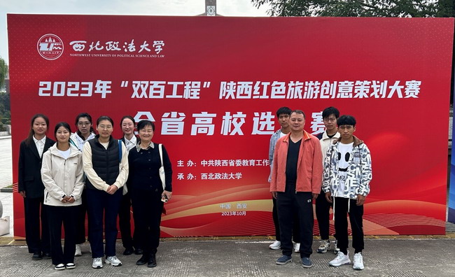由中共陕西省委教育工作委员会主办的2023年第二届“双百工程”陕西红色旅游创意策划大赛全省高校选拔赛, 10月21日在西北政法大学长安校区举行。我院有五支代表队参赛。其中由梁飞亚老师指导的学生团队晋级省级总决赛。