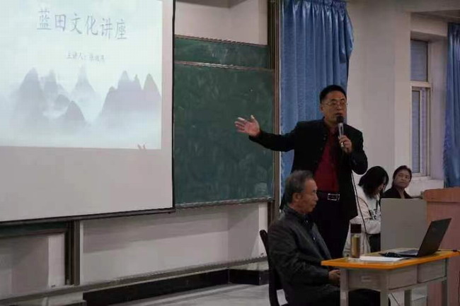 讲座中,张效东从“蓝田县域概况、蓝田地方文化、唐王维辋川文化”三个方面为师生阐释了蓝田是一个历史悠久,人文底蕴深厚,古老而又美丽的文化大县。他谈到蓝田是人类先祖和华夏文明最早的发源地之一,古属十三朝古都的京畿之地,置县至今已有 2400多年的历史,是陕西省置县时间最为久远的县。蓝田有远古始祖文化、蓝田古玉文化、蓝关古道文化、白鹿原民俗文化、王维辋川文化、蓝田四吕及牛兆濂关学文化等,蓝田还是中国著名的“美玉之乡”“温泉之乡”“厨师之乡”“陕菜之乡”和“白皮松之乡”。因此,蓝田自然生态优越,人文底蕴十分丰厚,是一个古老而又美丽的文化大县,有着厚重、灿烂的蓝田地方文化。