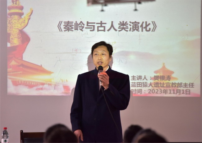 讲座中,他从“古秦岭的前世与今生、自然界生物演化发展、秦岭周边古猿及蓝田猿人、当下秦岭与历史典故、蓝田的历史与当下、校园环境与发展前景”六个方面,阐述了秦岭与古人类演化的历史脉络,强调,要尊重自然,珍惜爱护自然,要和自然和谐相处。他指出学院地处秦岭北麓,校园环境及自然环境优越,空气清新,是学习生活的好地方,广大学生要珍惜爱护优美的校园环境,好好学习,不断进步,作新时代德智体美劳全面发展的应用型专门人才,为国家经济建设和社会发展做出应有贡献。