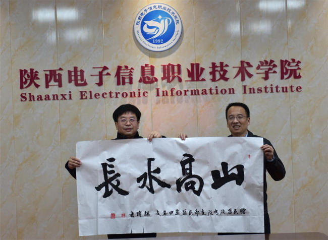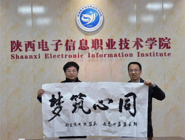 座谈交流之后,王明星代表民盟陕电院支部筹备小组向民盟蓝田总支赠送了“同心筑梦”;赵朋伟代表民盟蓝田总支向陕电院支部(筹)赠送了“山高水长”的书法作品,表达了民盟双方组织加深交流和友谊,同心同德为实现中华民族伟大复兴中国梦的共同心愿。