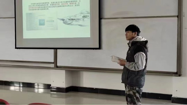 三位老师分别以 “大学生携笔从戎,好男儿志在四方”、 “中国精神是兴国强国之魂”、 “全体人们共同的价值追求”为主题开展“翻转课堂”的实践活动。