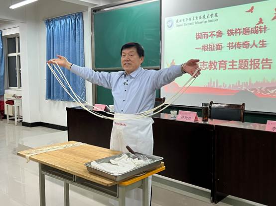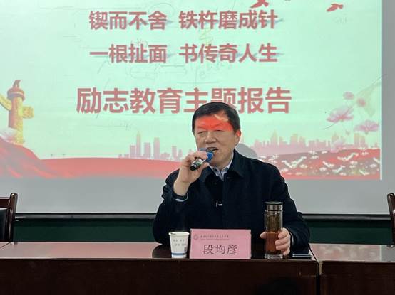 为了弘扬中华民族的传统美德,激发学生的学习原动力,把建成人人拼搏、人人感恩、人人绽放的能量场,引导学生做励勤奋之志、怀感恩之心的新时代青年。12月18日,我院开展了一场“锲而不舍、铁杵磨成针,一根扯面、书传奇人生”为主题的感恩励志报告会。
