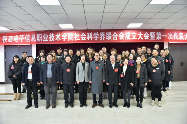 (陕西电子信息职业技术学院社会科学界联合会第一届委员会委员合影)