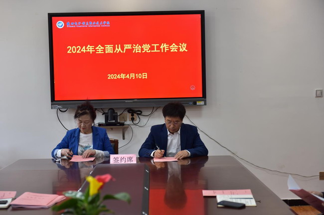 2024年4月10日,我院召开全面从严治党工作会议,传达学习二十届中央纪委三次全会精神和全省教育系统全面从严治党工作会议精神,总结学院2023年全面从严治党工作,安排部署2024年重点任务。院党委书记石光华出席并讲话,院党委副书记、纪委书记马放奇主持会议,院各领导、党委委员、纪委委员,副处级以上干部、各党支部书记参加会议。