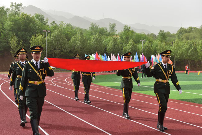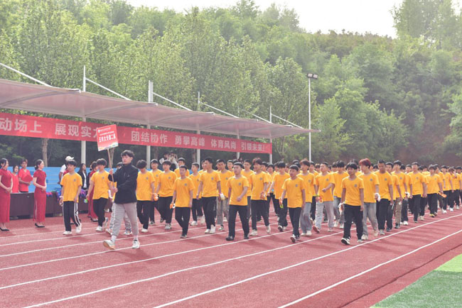 伴随着激昂的运动员进行曲,鲜艳的国旗在国旗护卫队护送下率先入场,彩旗方队、各系学生代表队、教职工代表队依次走过主席台,接受院领导与全体师生的检阅。各代表队昂首阔步,英姿勃发,神情饱满,斗志昂扬,满怀信心,展现了陕电院师生良好的精神风貌和拼搏争先精神。