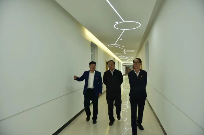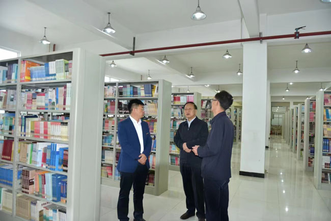 在校期间,范九伦一行走访了校图书馆、教学楼、实训中心和学生食堂等。