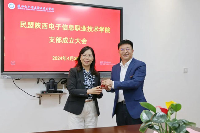 会议听取了支部筹备工作报告,宣读《民盟陕西省委员会关于成立民盟陕西电子信息职业技术学院支部及任命第一届支部委员的批复》,任命王明星为支部主委。随着张红向支部授印章,标志着省直属第34家高校基层组织诞生。
