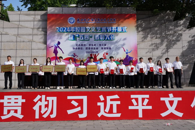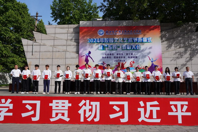 院党委委员、副院长李泽宇宣读《陕西电子信息职业技术学院“青春心向党 挺膺向未来”主题活动表彰决定》。随后,各领导为获得荣誉的先进集体和先进个人颁奖。获奖学生代表2302班学生徐一辰作了发言。