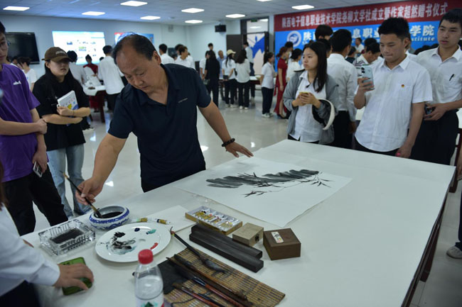 书画创作交流活动前,蓝田县著名作家郝文鹏为我院图书馆、学生社团和部分学生举行了赠书活动。郝文鹏把自己多年来创作的《文苑撷趣》《岁月留痕》《诗风鹏韵》三部文学作品共计500多册无偿捐献给了我院师生。学院为郝文鹏赠送了荣誉证书,对他向学院无偿赠书,支持学院文化艺术教育表示感谢。赠书过程中郝文鹏还向师生分享了自己的创作经验、写作技巧和体会感悟,使师生接受了一次文化教育和熏陶。