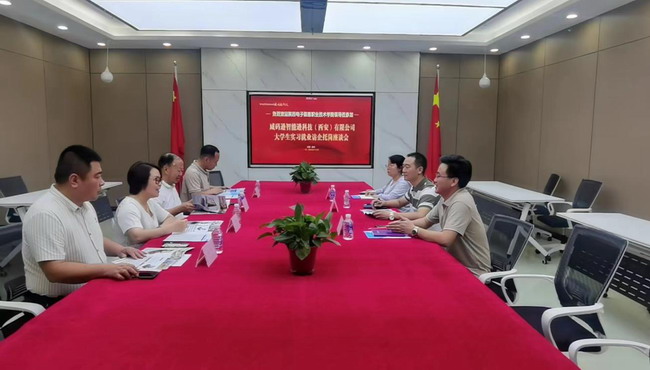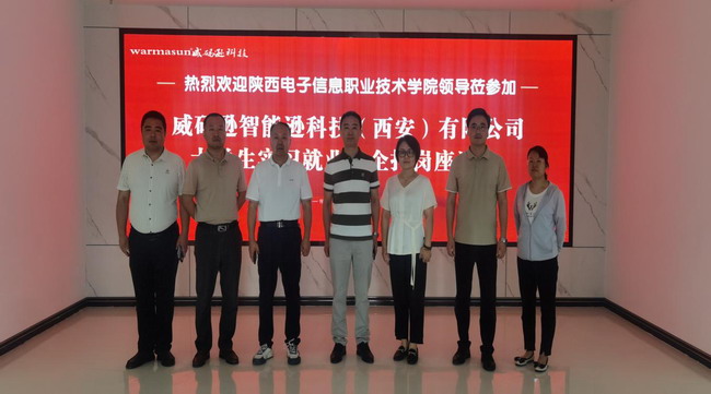 在威马逊智能逊科技(西安)有限公司李双全总经理的陪同下,参观了企业办公区,并通过交流座谈会的形式详细了解企业现状、未来发展、用工需求等内容,双方表示希望能够实现多层次、多形式、多领域的合作,共同推进企业进校园、校企合作进程,实现互惠共赢、共同发展。