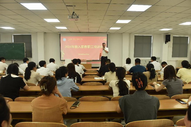 为了使新入职教职工尽快熟悉工作环境,更好胜任工作,履行好岗位职责,积极融入学院的发展和建设,8月29日上午,学院在教学楼1207会议室举办了2024年新入职教职工培训会。理事长、院长王明星出席并讲话,全体新入职的近50名教职工参加了培训及考核。会议由人事处副处长李倩主持。