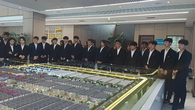 座谈会后,师生们实地参观了蓝田三元环保科技产业园。在产业园沙盘前,工作人员详细讲解了园区整体布局、入驻企业类型以及环保科技产业链的构建情况。