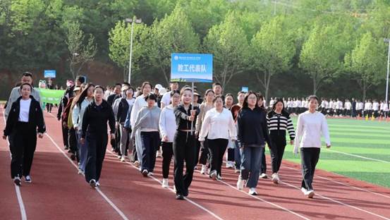 在激昂的《运动员进行曲》中,国旗护卫队迈着铿锵有力的步伐护送国旗入场。他们身姿挺拔、目光坚定,每一步都踏出了蓬勃的朝气与使命感 ,鲜艳的五星红旗在阳光下熠熠生辉。随后,彩旗方队挥舞着五彩斑斓的旗帜紧跟其后,猎猎彩旗如波浪翻涌,彰显着青春的热烈与奔放。志愿者方队、教工裁判队依次走过主席台,他们精神饱满,用灿烂的笑容和整齐的步伐展现着奉献精神与专业态度。