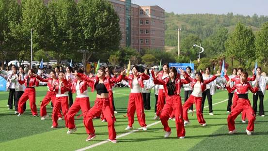 精彩的文体表演将开幕式推向高潮。舞蹈秧歌《山丹丹花开红艳艳》中,演员们身着鲜艳的陕北服饰,手持红绸,扭出欢快的舞步 ,浓郁的地方风情与热烈的氛围瞬间点燃全场;武术表演《闹海》中,表演者们拳脚生风、刚劲有力,一招一式尽显中华武术的博大精深,让人不禁为之喝彩;爵士舞表演《律动节拍》则展现了青春的动感与活力,舞者们随着强劲的音乐节奏尽情舞动,充满感染力的表演赢得现场师生的阵阵掌声与欢呼声。