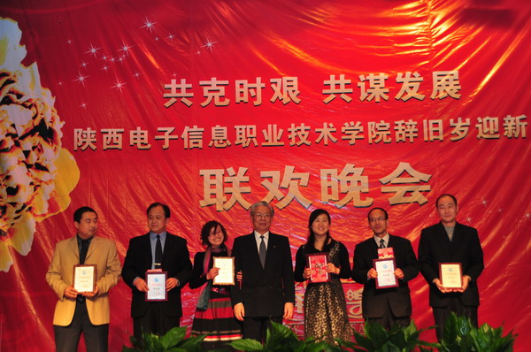 院长邢永华以“共克时艰,共谋发展”的重要讲话拉开了本次晚会的序幕,他全面总结了我院办学18年来所取得的成绩以及面临的挑战,讲话内容真实,鼓舞人心,不时迎来台下全场师生的阵阵掌声。学院董事会、省教育厅和杨凌示范区管委会为学院赠送了字画“鲲鹏展翅翱翔九天 虎跃龙腾福泽四海”“陕电职院 师生员工 同心协力 争创第一”以表庆贺。同时,学院征集的新校徽在省教育厅石光华处长和莱佛士教育集团中国区总裁周国础先生的共同揭幕下,终于揭开其神秘面纱闪亮登场,预示着学院在新的一年里,必将以崭新的面貌迈向更加辉煌的发展征程。