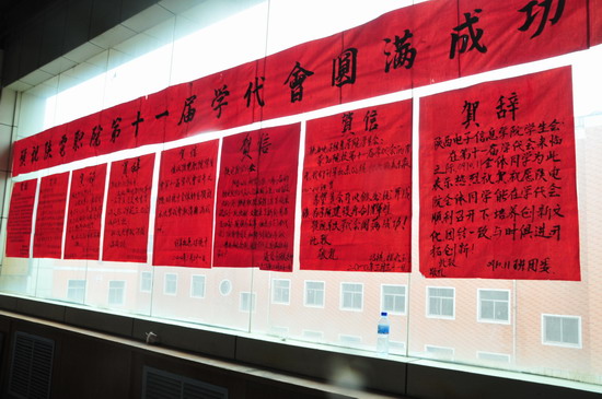 院领导在讲话中,对第十届学生会一年来的工作给予了充分的肯定,代表学院对他们的辛勤工作表示由衷的感谢。对当选的新一届学生会委员表示热烈的祝贺,希望他们继续秉承我院学生会的光荣传统,本着“服务学院,服务学生”的宗旨,努力做好各项工作,为学院的跨越式发展做出积极的贡献。新当选的学生会委员表示他们一定不负众望,努力做好学生会工作,使学院领导老师放心,学生满意。最后院第十一届学生代表大会在热烈的掌声中圆满落下帷幕。