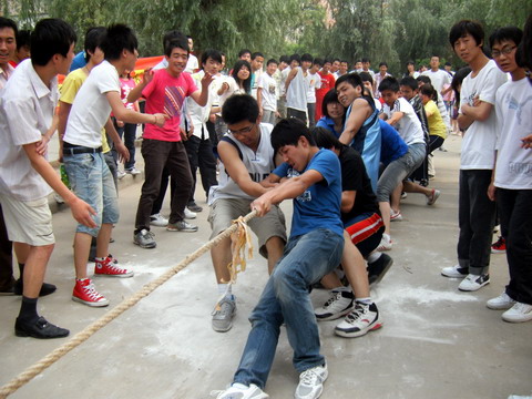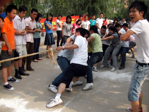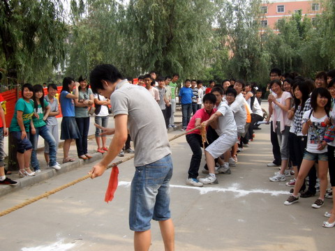 为进一步加强组织建设,增进各团支部活力、凝聚力,提高全系学生思想素质与身体素质,我系于2010年5月25日下午16:00在学院操场举行了以“加强组织建设,尽展支部活力”为主题的拔河比赛。