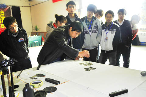 当团委书记朱老师宣布本次书画展正式开始后,院领导、嘉宾和广大师生认真观赏了本次书画展的参展作品,并为优秀作品进行了投票,院报记者积极进行对学院领导和到场嘉宾进行采访,现场嘉宾给了同学们提出了很多宝贵的意见和建议,并对此次书画展的成功举办给予高度肯定,他们表示“书画艺术是祖国文化的精髓和宝贵财富,同学们的作品一方面展示了自己的书法和绘画特长,最主要的是通过作品表达了同学们对学院和祖国的感激之情,这一点是难能可贵的。”最后嘉宾现场挥毫泼墨,并与我院师生合影留念。