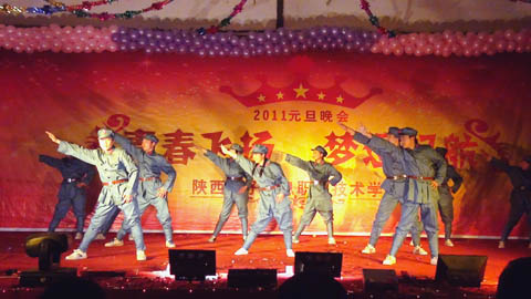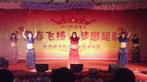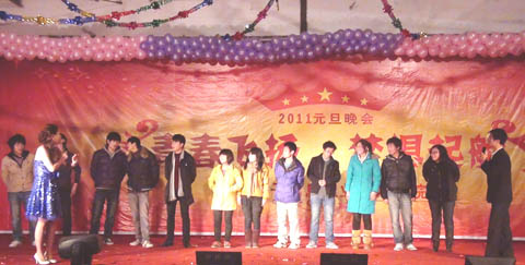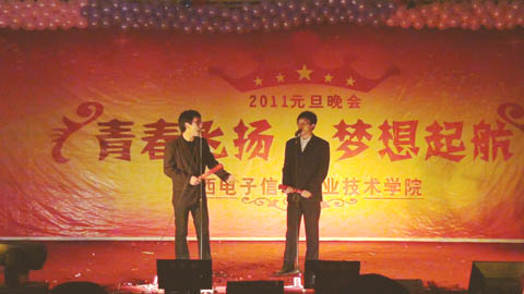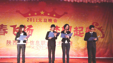 一段精彩的乐队演奏拉开了晚会的序幕,院长邢永华为本次晚会致辞,在回顾了过去一年里我院取得的重大成就的同时,描绘了即将到来的2011年我院的整体发展蓝图。动感的旋律洋溢着青春的朝气,靓丽的西域舞蹈制造出热烈的气氛。雅俗共赏的节目成为本次晚会的一大特色,既有阳春白雪的诗歌朗诵、笛子、吉他合奏,又有“红军”反串舞蹈的表演、民间文化相声的全新诠释,节目中还穿插了互动游戏。同学们在节日的气氛下,展现着自己的活力和风采。晚会持续了近两个小时,丰富的节目形式、大气的演绎风格、轻松的节日氛围不时赢得观众的阵阵掌声。